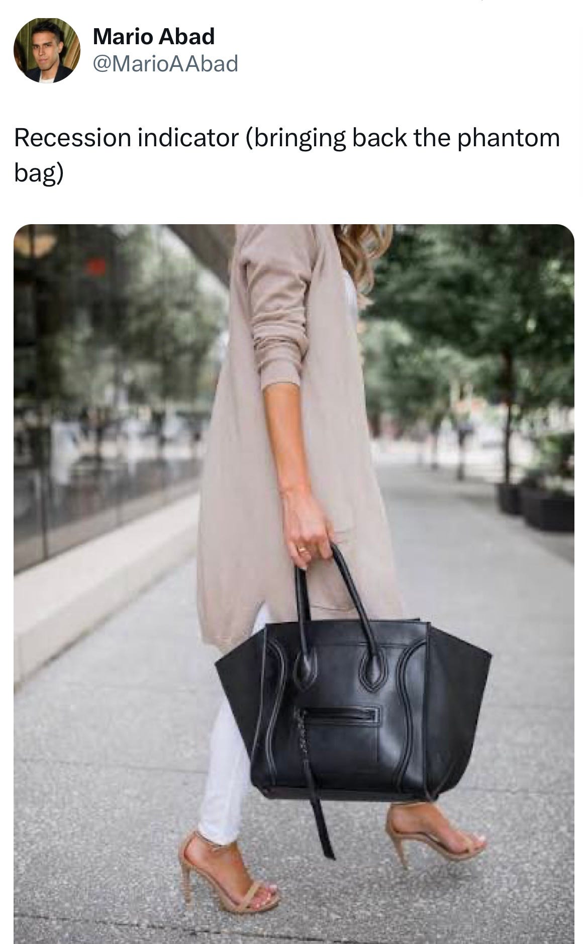 Casual blazers. The return of pop punk. Kreayshawn. Logomania. Celine Phantom bags. Celebrities in commercials. Infinite Jest. Although these things appear to have little in common, they’ve all been dubbed ‘recession indicators’ on social media. While we are not technically in a recession—in May, J.P. Morgan Research reduced the probability of a 2025 U.S. and global recession from 60% to 40%— you wouldn’t know it by the state of the internet. Every time I open my phone, a flood of posts designating new cultural objects or phenomena recession indicators—sometimes joking, sometimes not. Just about anything can be a “recession indicator,” but they typically fall into one of two categories: a pop culture artefact from 15-20 years ago makes a mysterious return (e.g. The Devil Wears Prada 2), or someone engages in strange/out-of-character/cringe behaviour in order to save money.