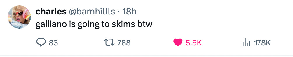 Absolutely nothing! I’ve been so maniacally materialistic these past few months that I’m truly feeling burnt out and need a break. That said, I did get new prescription lenses put in my old glasses frames and while I was at the optician, tried on these lil Chloe numbers that I was really vibing with. Not sure if they’re significantly better than my current glasses—a subject I discussed at length in Irene Kim’s wonderful newsletter—but I am technically “considering” them.